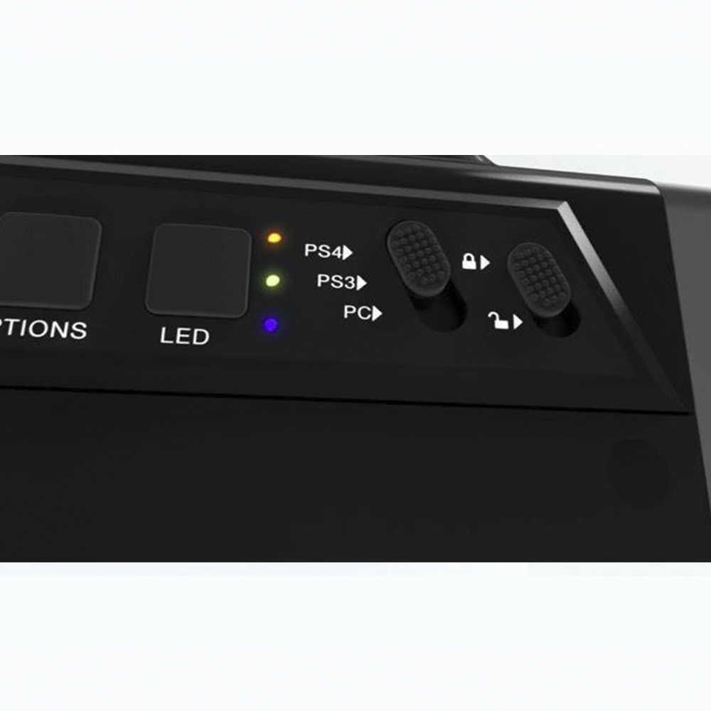 ブルーのアクセントが光ります。LED発光モード切替ボタンを操作すれば、